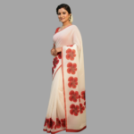 Defined Red Border: A sharp Red contrast border frames the saree and the embroidered section, providing definition and enhancing the vibrancy of the floral work.