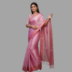 - Elegant Pallu: The Pallu is simple yet striking, showcasing a vertical striped pattern woven into the fabric, and finished beautifully with matching tassels (in shades of pink/red), adding movement and charm.